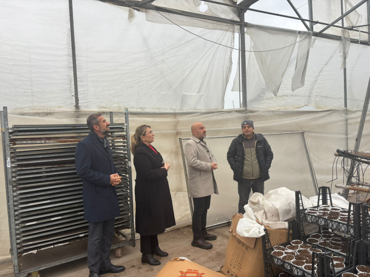 Heyet, fırtınadan etkilenen seralarda yerinde incelemelerde bulunarak üreticilerden yaşanan hasar hakkında bilgi aldı.