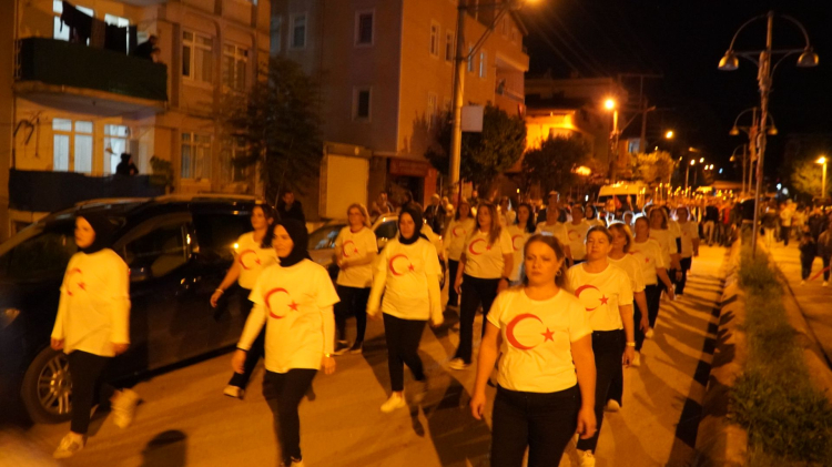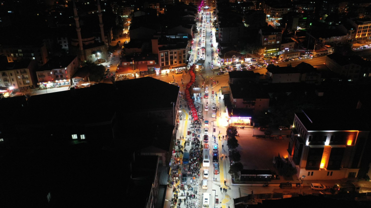Altınova’da 300 metrelik Türk bayrağıyla fener alayı