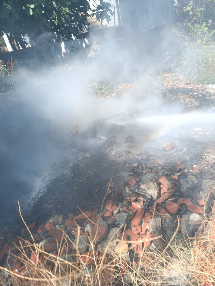 Rüzgarın da etkisiyle büyüyen yangını güçlükle kontrol altına alan itfaiye ekipleri söndürerek soğutma çalışması gerçekleştirdi.