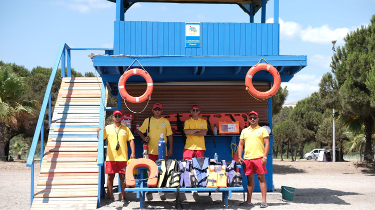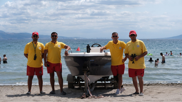 Plajda ekip lideri Tuncay Arslanalp yönetiminde Ensar Baltacı, Özgür Palaşoğlu ve Hacı İbrahim Tunç’tan oluşan gümüş bröveli cankurtaran ekibi görev yapıyor.