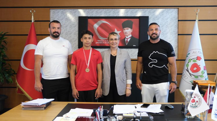 Türkiye şampiyonu olan Siyel Kadiri, Altınova Belediyesi Güreş antrenörü Kaan Kaya ve Altınova GSiM Antrenörü Burak Kaya ile birlikte Altınova Belediye Başkanı Yasemin Fazlaca’yı ziyaret etti.