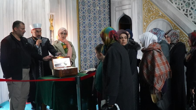 Altınova'da Sakal-ı Şerif ziyareti yoğun katılımla gerçekleşti. Altınova Belediye Başkanı Yasemin Fazlaca da Sakal-ı Şerif’i ziyaret edenler arasında yer aldı