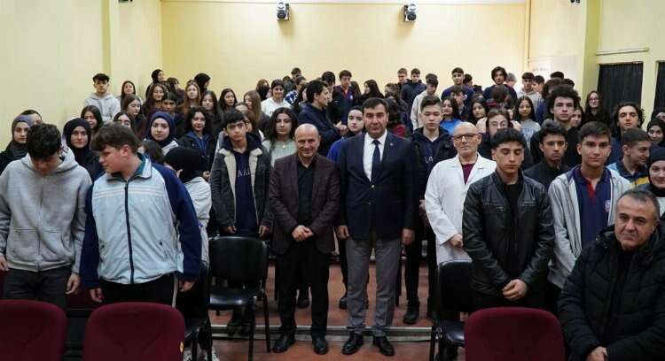 Altınova’yı sağlıklı bir geleceğe taşıyacak projeleri bir bir devreye alan Altınova Belediye Başkanı Dr. Metin Oral, yoğun programına rağmen eğitim kurumlarını ziyaret edip, öğrencilerle bir araya gelmeyi de ihmal etmiyor. Başkan Oral’ın eğitim kurumlarındaki son durağı Altınova Anadolu Lisesi oldu. Okulun kariyer günlerine katılan Başkan Oral, önce Okul Müdürü Bünyamin Kozaklı ve öğretmenlerle bir araya gelip, sohbet etti. Daha sonra okulun konferans salonunu dolduran öğrencilere seslenen Başkan Oral, kendi yaşamından örnekler verip, isteyince ve çalışınca başarılamayacak bir şey olmadığını vurguladı.