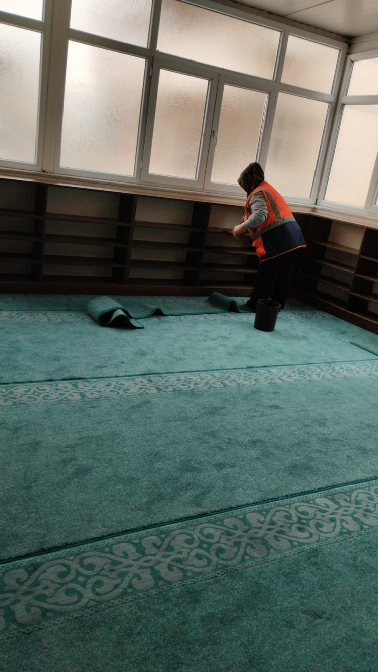 Temizlik çalışmalarının bir diğer önemli adresi ise ilçe genelindeki camiler oldu. Vatandaşların yoğun olarak katıldığı bayram namazı öncesi camilerde bulunan halılar yıkanarak temizlendi ve ibadete hazır hale getirildi.