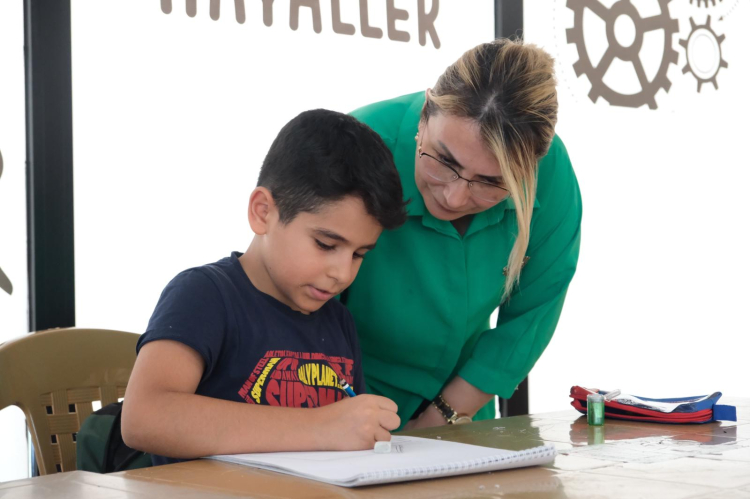 Altınova Belediye Başkanı Yasemin Fazlaca, belediye hizmet binası 4. katında faaliyet gösteren resim kursunu ziyaret ederek çocuklarla bir araya geldi