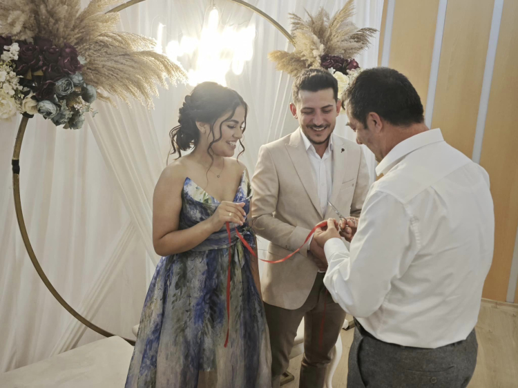 Çiçeği burnunda olan çifte bir ömür boyu mutluluklar dileyen Canbay, “Genç çiftimize bir ömür boyu mutluluklar diliyor, sağlık ve huzur dolu günler geçirmelerini temenni ediyorum” dedi. Ardından beldedeki Yıldız ve Tursun ailelerinin evlatları Aslı ve Furkan’ın nişan yüzüklerini takarak mutluluklarına ortak olan Canbay, nişanlanan çift için “Evliliğe ilk adımı atan genç çiftimize sağlıklı, mutlu bir ömür diliyorum. Hayırlı uğurlu olsun” ifadelerini kullandı.