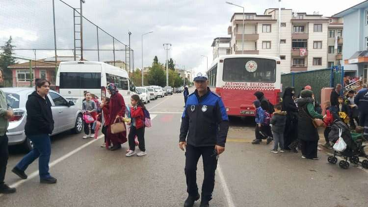 Öğrencilerin ve ailelerin, okula giriş ve çıkış saatlerinde herhangi bir güvenlik sorunuyla karşılaşmaması için emniyet ve zabıta ekipleri gerekli tüm önlemleri alıyor. Özellikle araç trafiğinin yoğun olduğu bölgelerde, öğrencilerin yaya geçitlerinden güvenli bir şekilde geçmesi Altınova Belediyesi Zabıta Amirliği ekipleri tarafından sağlanıyor.