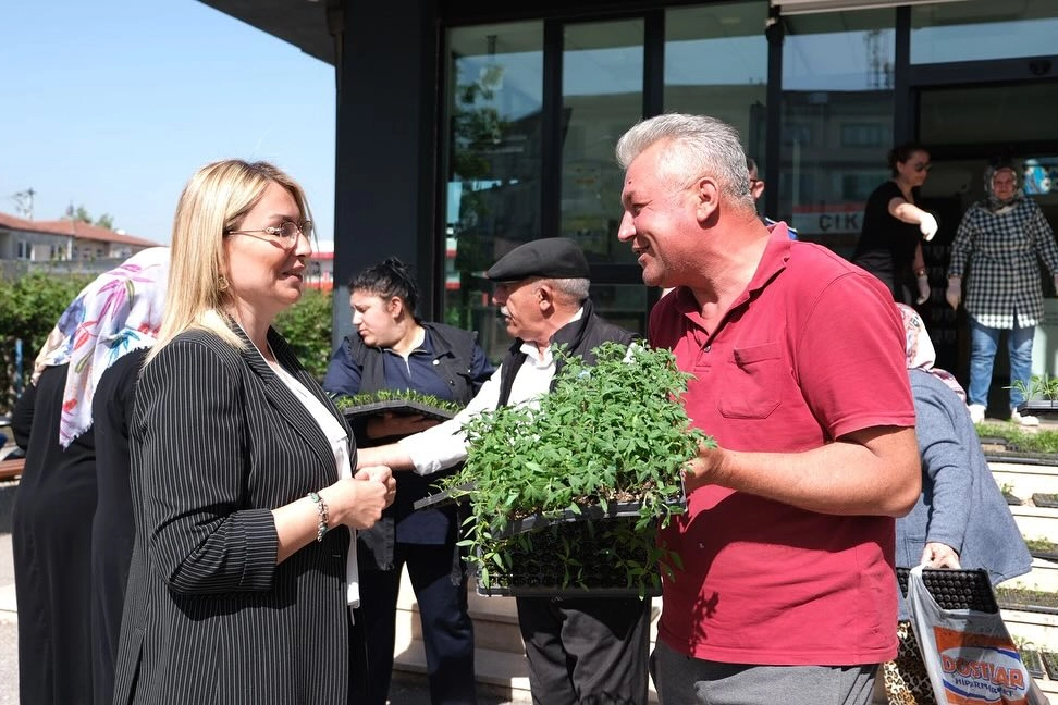 Belediye binası önünde gerçekleştirilen dağıtım programına Altınova Belediye Başkanı Yasemin Fazlaca da katıldı ve fideleri çiftçilere bizzat teslim etti.