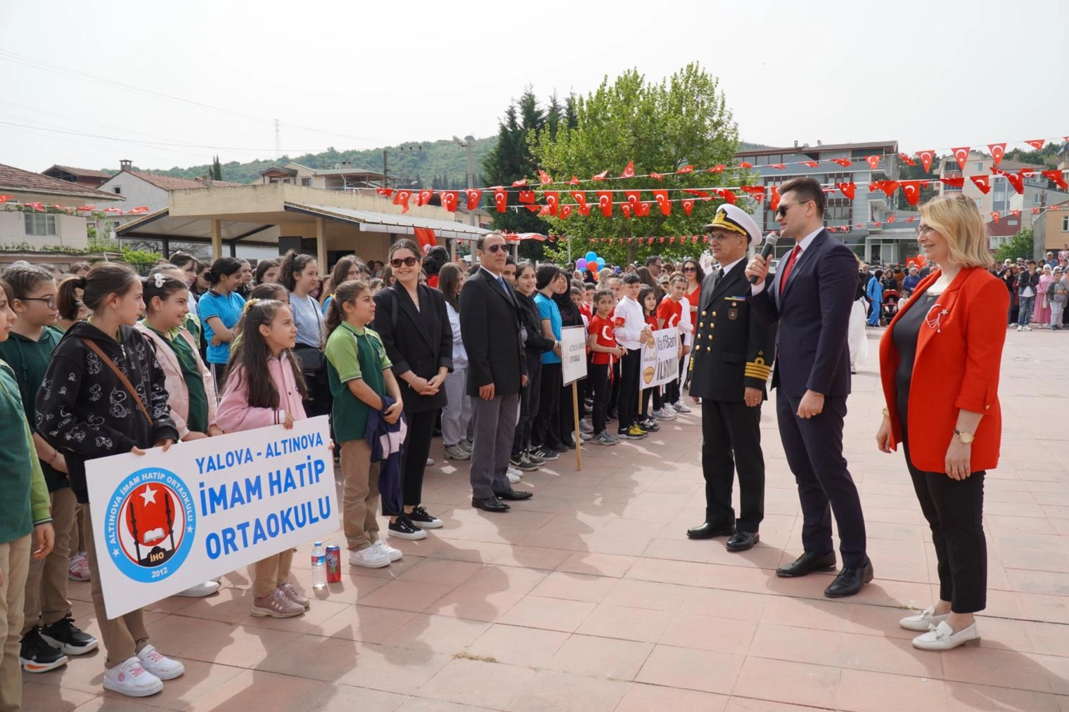 23 Nisan Ulusal Egemenlik ve Çocuk Bayramı, Altınova Hükümet Konağı önünde, İlçe Milli Eğitim Müdürlüğü çelenginin sunulması, saygı duruşunda bulunulması ve İstiklal Marşı’nın okunmasıyla başladı.