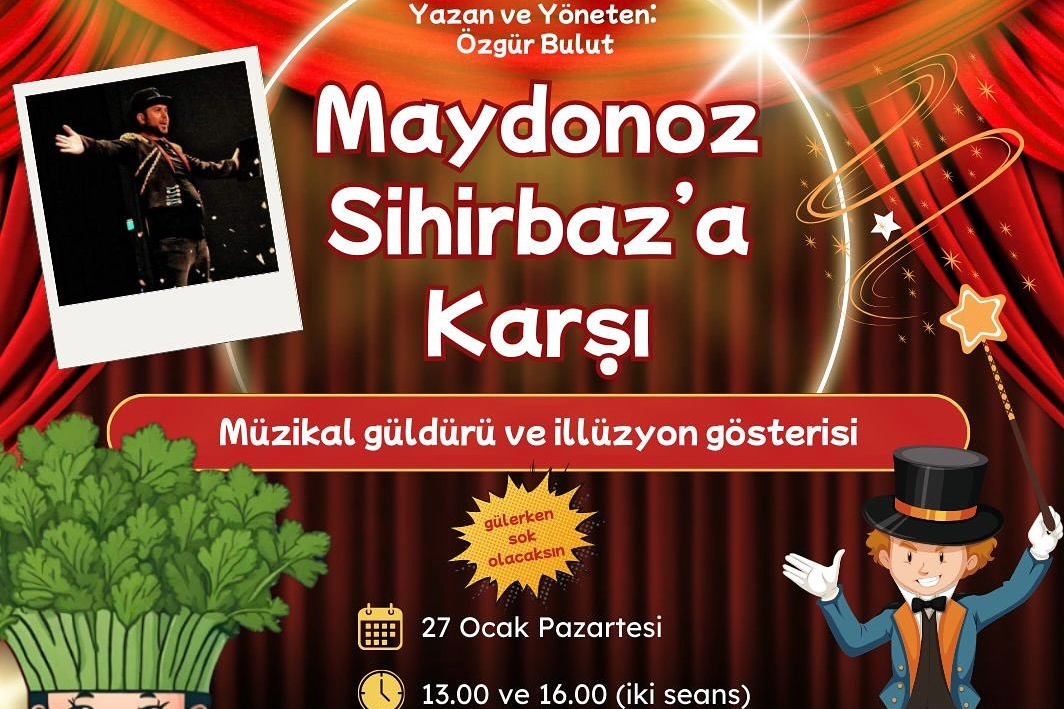 Başkan Fazlaca, sosyal medya hesaplarından yaptığı duyuruda, "Çocuklar, ara tatilde eğlenceli bir aktiviteye ne dersiniz. Müzikli, heyecanlı ve de üstelik illüzyon gösterisiyle dopdolu ‘Maydonoz Sihirbaz’a Karşı’ oyununu birlikte izleyelim mi? İfadelerini kullandı.