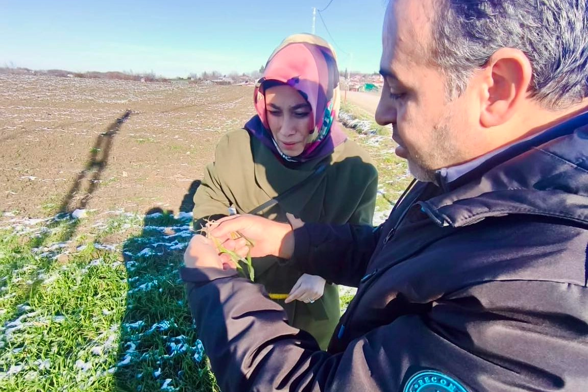Arazide yapılan incelemelerde, hububat ekili alanlarda bitkilerin çıkış ve gelişim durumları, kök sağlığı ve mevsime bağlı stres faktörleri analiz edildi. Meyve yetiştiriciliğinde de önemli bir potansiyele sahip olan ilçede, ağaçların kış dinlenme dönemindeki durumları kontrol edilerek olası hastalık ve zararlı belirtileri araştırıldı.