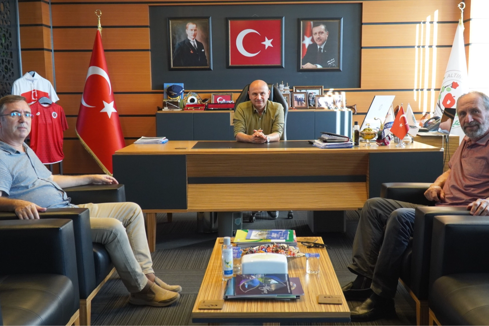 Karamürsel Belediye Meclis Üyesi Hasan Turan ve Mali Müşavir Ercan Demirel, Altınova Belediye Başkanı Dr. Metin Oral’ı ziyaret etti. Oldukça samimi bir ortamda gerçekleşen ziyarette karşılıklı görüş alışverişinde bulunuldu. Altınova Belediye Başkanı Dr. Metin Oral, ziyaretten duyduğu memnuniyeti belirtirken misafirlerine teşekkür etti.