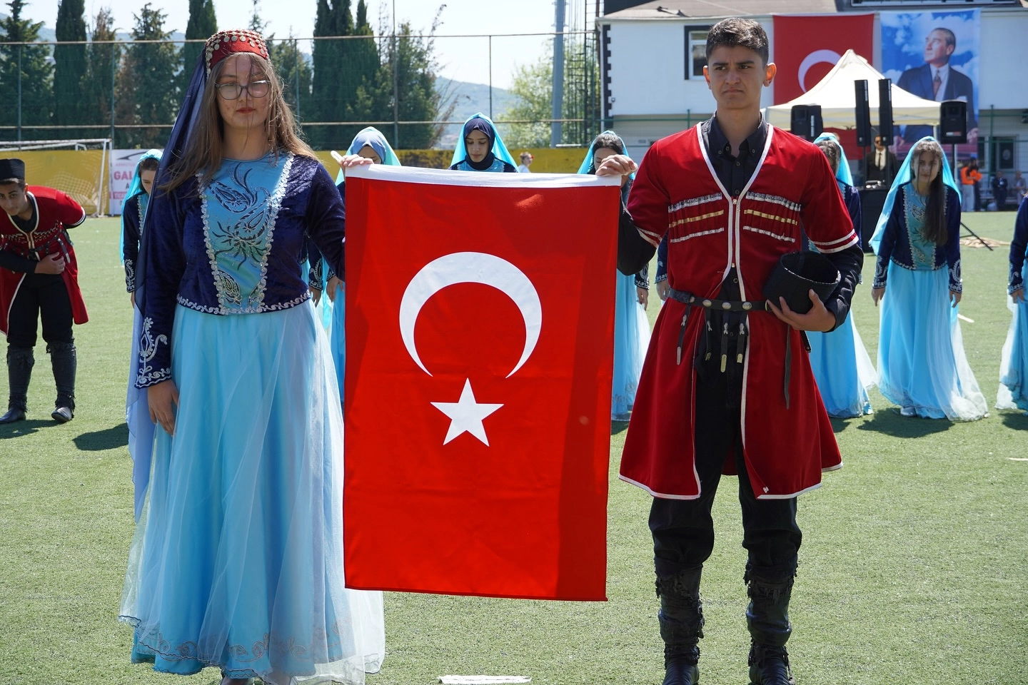 Öğrencilerin hazırladığı halk oyunları, jimnastik ve sportif gösteriler izleyicilerden tam not aldı.