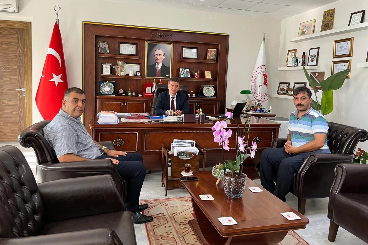 Armutlu İlçe Tarım ve Orman Müdürü Fatih Mehmet Kayalı, Yalova İl Tarım ve Orman Müdürü Selçuk Yaman’ı ziyaret ederek ilçedeki tarımsal faaliyetler hakkında değerlendirmelerde bulundu. Gerçekleştirilen ziyarette İl Tarım ve Orman Müdürü Selçuk Yaman tarafından, Kayalı’ya Yalova’da yürütülen tarımsal üretim projeleri ve tarımsal faaliyetler hakkında detaylı bilgilendirme yapıldı. Yaman, Yalova’nın tarım ile ilgili potansiyel konumu ve devam eden faaliyetlerle ilgili önemli bulgular paylaşarak, belediye kurumları ile daha yakın işbirliği içerisinde olmanın önemini vurguladı. Ziyaretin sonunda, Yaman ve Kayalı, Yalova ve Armutlu’nun tarım alanında daha başarılı olması için düzenli çalışmanın olması gerektiğine dikkat çekerek, ilerleyen zaman içerisinde daha kapsamlı projelere imza atmanın öneminden bahsettiler. M. Tunç Tanrıverdi