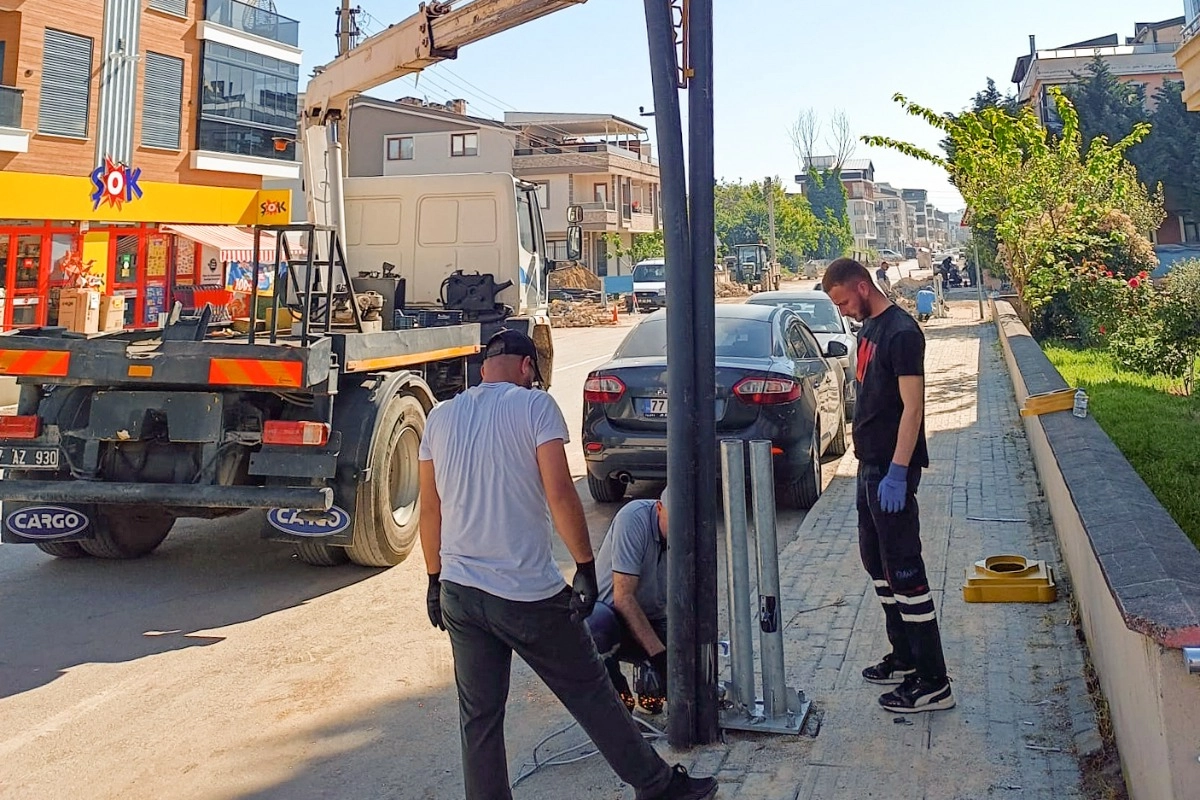 İlk etapta 12 adet yeni nesil aydınlatma direği caddenin iki yanında belirlenen yerlerine dikilirken, çalışmalar nedeniyle bozulan noktalarda kaldırımların yenileme çalışmaları da saha ekipleri tarafından yapılmaya başlandı.