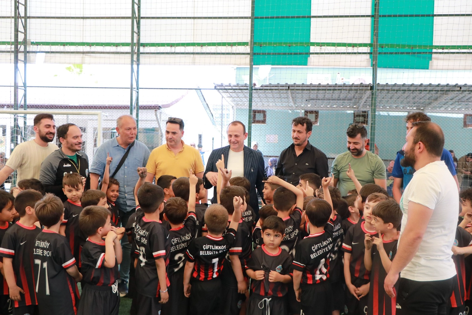 Çiftlikköy Belediyespor Altyapı Antrenörleri Gökhan Aktaş, Okan Akkaş, Uğur Keskin, Eyüpcan Durmuşoğlu ve Onur Altıntaş nezaretinde Belediye Halı Saha Tesisleri’nde çalışmalarını sürdüren futbol okulunun yeni yetenekleri, Başkan Yele’ye büyük ilgi gösterdi.