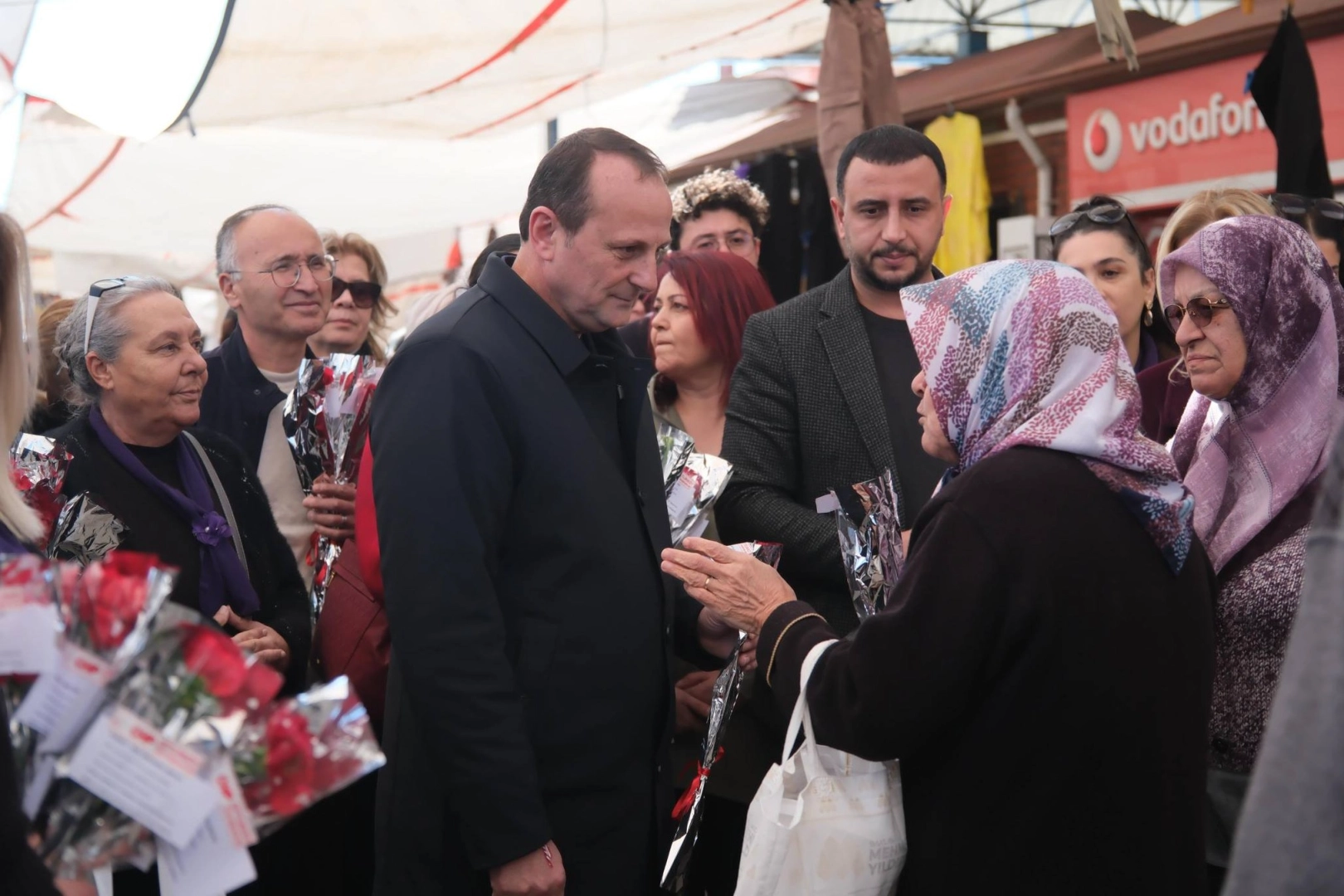 Pazaryerinde tezgah açan ve alışveriş yapan kadınlarla bir araya gelen heyet, kadınlara karanfil takdim ederek günlerini kutladı. Pazar tezgahlarının arasında gerçekleşen bu samimi buluşma, renkli görüntülere sahne oldu. Karanfillerini alan kadınlar, nazik davranışları adına CHP heyetine teşekkür etti ve duydukları memnuniyeti dile getirdi.