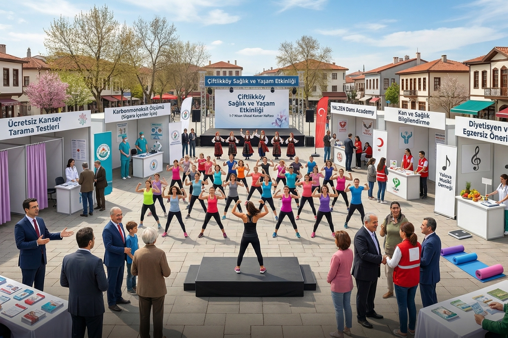 Çiftlikköy Belediyesi’nin katkılarıyla ve Birlikte Kanserle Mücadele Derneği (BİKAMDER) öncülüğünde yapılacak olan etkinliğe il ve ilçe sağlık müdürlüklerinin yanı sıra Türk Kızılayı Yalova Şubesi, Yeşilay Yalova Şubesi, YALZEN Dans Academy, Çiftlikköy Kafkas Derneği ve Yalova Musiki Derneği destek veriyor. Yalova Üniversitesi de, Spor Bilimleri Fakültesi ve Fizyoterapi ve Rehabilitasyon Uygulama ve Araştırma Merkezi ile etkinliğe destek veren paydaşlar arasında yer alıyor. Ücretsiz kanser tarama testleri, sigara içenlere yönelik karbonmonoksit ölçümleri, zumba ve egzersiz etkinlikleri gibi pek çok aktivitenin yer alacağı etkinlik, 10 Nisan Cuma günü saat 11.00’de başlayacak ve 18.00’e kadar sürecek. Etkinlik kapsamında Kanser Erken Teşhis, Tarama ve Eğitim Merkezleri (KETEM) faaliyetleriyle ilgili bilgilendirmelerin yapılacağı ve diyet-egzersiz önerilerinin alınabileceği diyetisyen stantları da yer alacak. BİKAMDER Başkan Yardımcısı Dr. Deniz Öner, “Çağın hastalığı olan kanserle etkin mücadele için ilk adımımız farkındalık yaratmak. Düzenli sağlık taramaları yaptırmak, erken teşhisi kolaylaştırarak bu ölümcül hastalığa karşı bizlere avantaj sağlıyor. O nedenle, sağlığına önem veren tüm Çiftlikköy sakinlerini 10 Nisan Cuma günü ilçe meydanına bekliyoruz” diye konuştu. Etkinliğe tam destek verdiğini belirten Çiftlikköy Belediye Başkanı Adil Yele de, tüm vatandaşları bu anlamlı etkinliğe katılarak hem kendi sağlıkları hem de toplum sağlığı adına önemli bir adım atmaya davet etti.