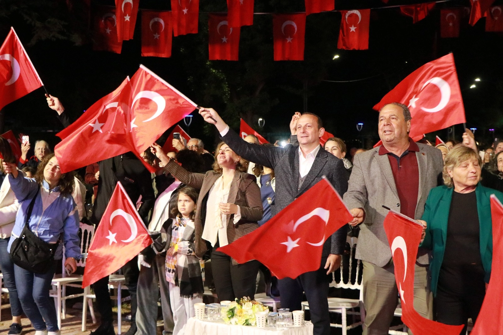 Türk Sanat Müziği’nin seçme eserlerinden oluşan şarkılarla coşan Çiftlikköylüler, gecenin sonunda Türk bayrakları eşliğinde renkli görüntüler oluşturdu.