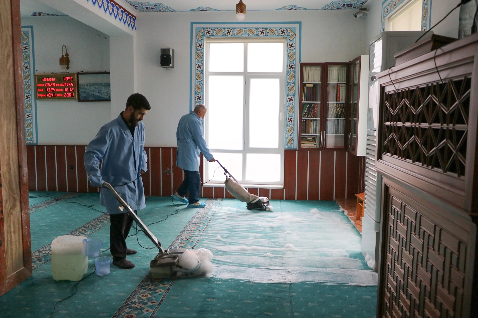 Çarık, “İlçe genelinde altı mahalledeki camilerimiz ve köy camileri dahil olmak üzere toplam 21 camide kapsamlı temizlik çalışması yaptık. Temizlik İşleri Müdürlüğü’ne bağlı ekiplerimiz tarafından titizlikle yürütülen çalışmalarda genel temizlik uygulamalarının yanı sıra halıları özel köpüksüz deterjanlarla yıkayarak hijyen standartlarını en üst seviyeye çıkardık. Özellikle giriş ve çıkış alanları haşerelere karşı ilaçlanarak steril hale getirildi” diye bilgi verdi.