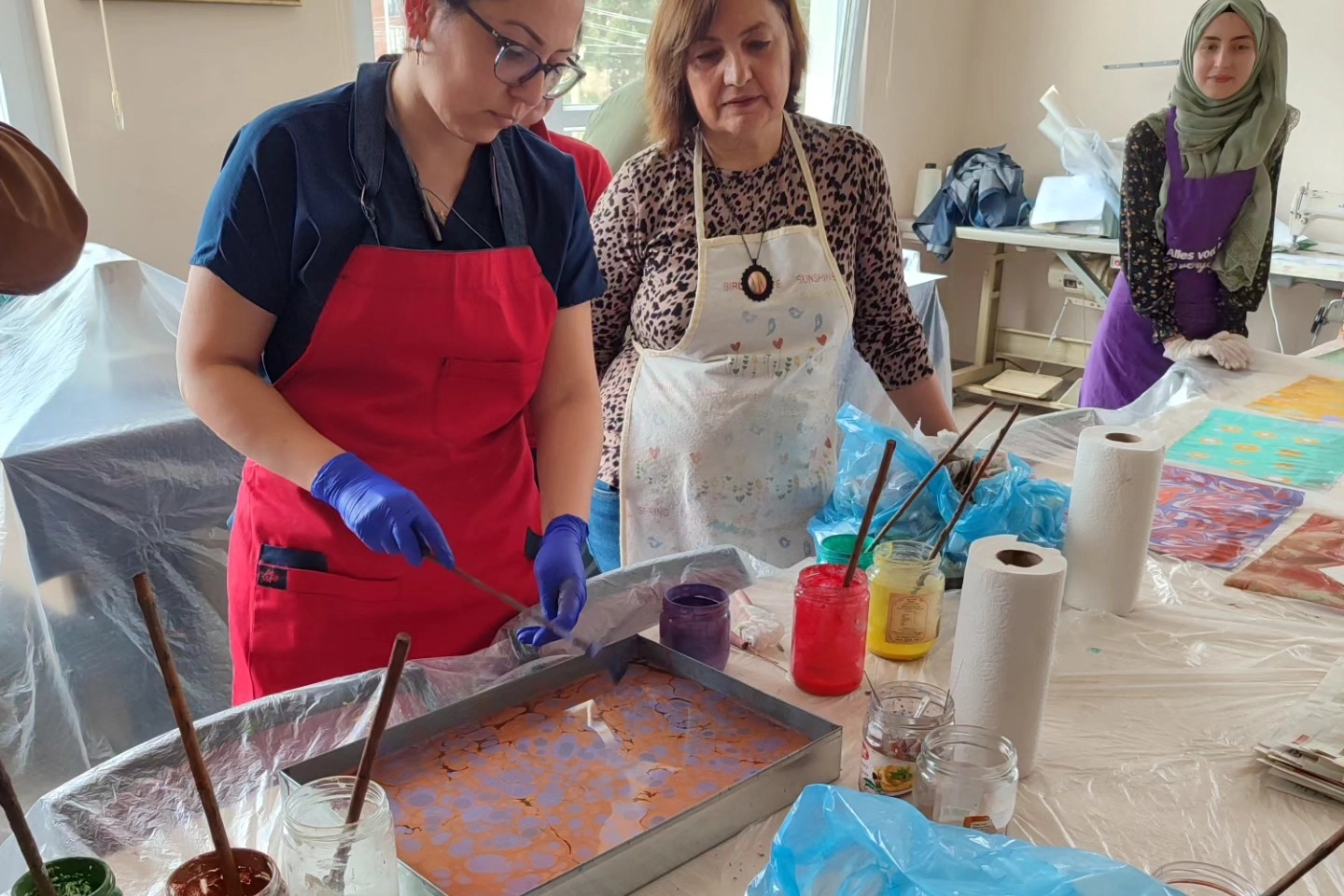 Geleneksel Osmanlı sanatlarından birisi olan ebru, Çiftlikköylü kadınların ilgisini çekiyor. Çiftlikköy İlçe Halk Eğitim Müdürlüğü tarafından açılan Ebru Kursu da adeta kadınların akınına uğradı. Kurslarda oluşturulan ebru çalışmalarını yıl sonu sergisi ile vatandaşların beğenisine de sunmak istediklerini ifade eden kadın kursiyerler, kendilerine bu imkanı sunduğu için Çiftlikköy Halk Eğitim Müdürlüğü'ne de teşekkür ettiler.