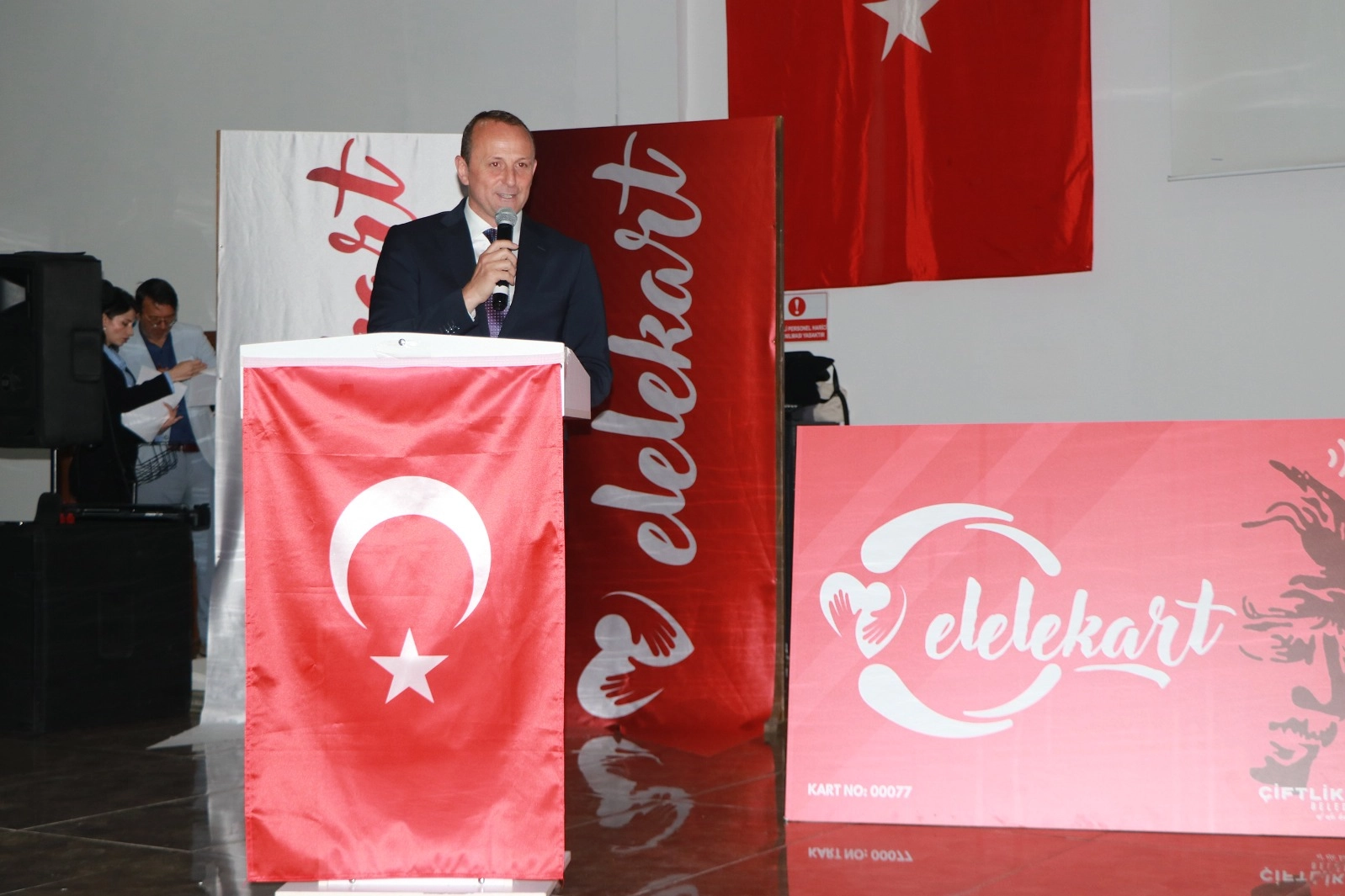 Çiftlikköy’de 1 yılda yapılan hizmetleri kısaca özetleyen Çiftlikköy Belediye Başkanı Adil Yele ise konuşmasında, “Sosyal belediyecilik anlayışımızın çok önemli bir örneğini daha sizlerle buluşturuyoruz. El Ele Kart, adından da anlaşılacağı gibi bir dayanışma ve birliktelik kartı. Seçim döneminde sözünü verdiğimiz bu sosyal destek kartı ile ilçemizde yaşayan annelerimize, öğrencilerimize ve yaşlılarımıza, belediyemize ait sosyal tesislerde geçerli yüzde 30 indirim imkanı sağlıyoruz. Bu kart sadece bir indirim kartı değil. Çiftlikköy'de gerçekleştirdiğimiz sosyal ve ele belediyeciliğin simgesi. Bugün burada ilk El Ele Kartlarımızı sahiplerine teslim ediyoruz. Dilerim sağlıkla, mutlulukla kullanırlar. Sizlerle hep el ele çalışmaya devam edeceğiz. Beni dinlediğiniz için hepinize teşekkür ediyor, Elele Kartımızın ilçemize ve halkımıza hayırlı olmasını diliyorum. Sağ olun, var olun” diye konuştu. Başkan Yele’nin ardından konuşan CHP İl Başkanı Erdem Doğancı da, “Ben bir il başkanı olarak gerçekten 8 belediye başkanımızdan da razıyım, neden razıyım biliyor musunuz, vatandaşın şikayeti yok diyemem, vatandaşın şikayeti geliyor ama çözümü de yine hep kendileri buluyor. Hiçbir aksaklığa mahal vermeden toplumun tüm taleplerini yüzde 99 oranında karşılıyorlar ve bunu da görüyoruz, hepsine tekrar sizlerin huzurunda teşekkür ediyorum” dedi.