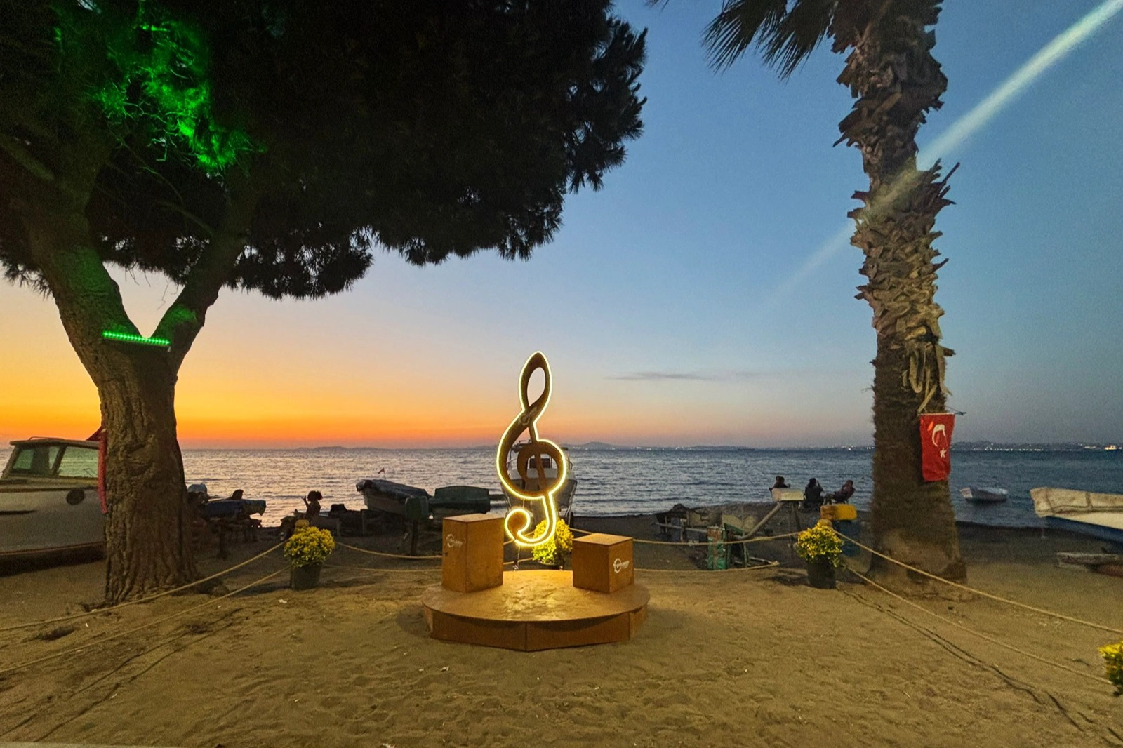Park ve Bahçeler Müdürü Tamer Balkaş, müzik platformunun CNC kesimlerle mekana uygun olarak tasarlandığını dile getirerek, “Platformun deniz suyu, yağmur ve yüksek nem gibi olumsuz şartlardan etkilenmesini önlemek amacıyla marin kontrplak üzerine 2 kat emdirilmiş tik ağacı kullanıldı. Farklı yükseklikte 2 sanatçının oturabileceği şekilde oturma boyutlarının ayarlandığı platformda gitaristler için özel oturma ölçüsü kullanıldı. Gün ışığ LED ile aydınlatılarak geceleri daha etkili bir görünüm kazanmasını sağladık. Taşınabilir bir kent mobilyası olarak, gerektiğinde başka alanlara taşınabilmesini sağlayacak şekilde dizayn edilen platform, amatör müzisyenler ve müzik severler için güzel bir buluşma noktası olacak” diye bilgi verdi.