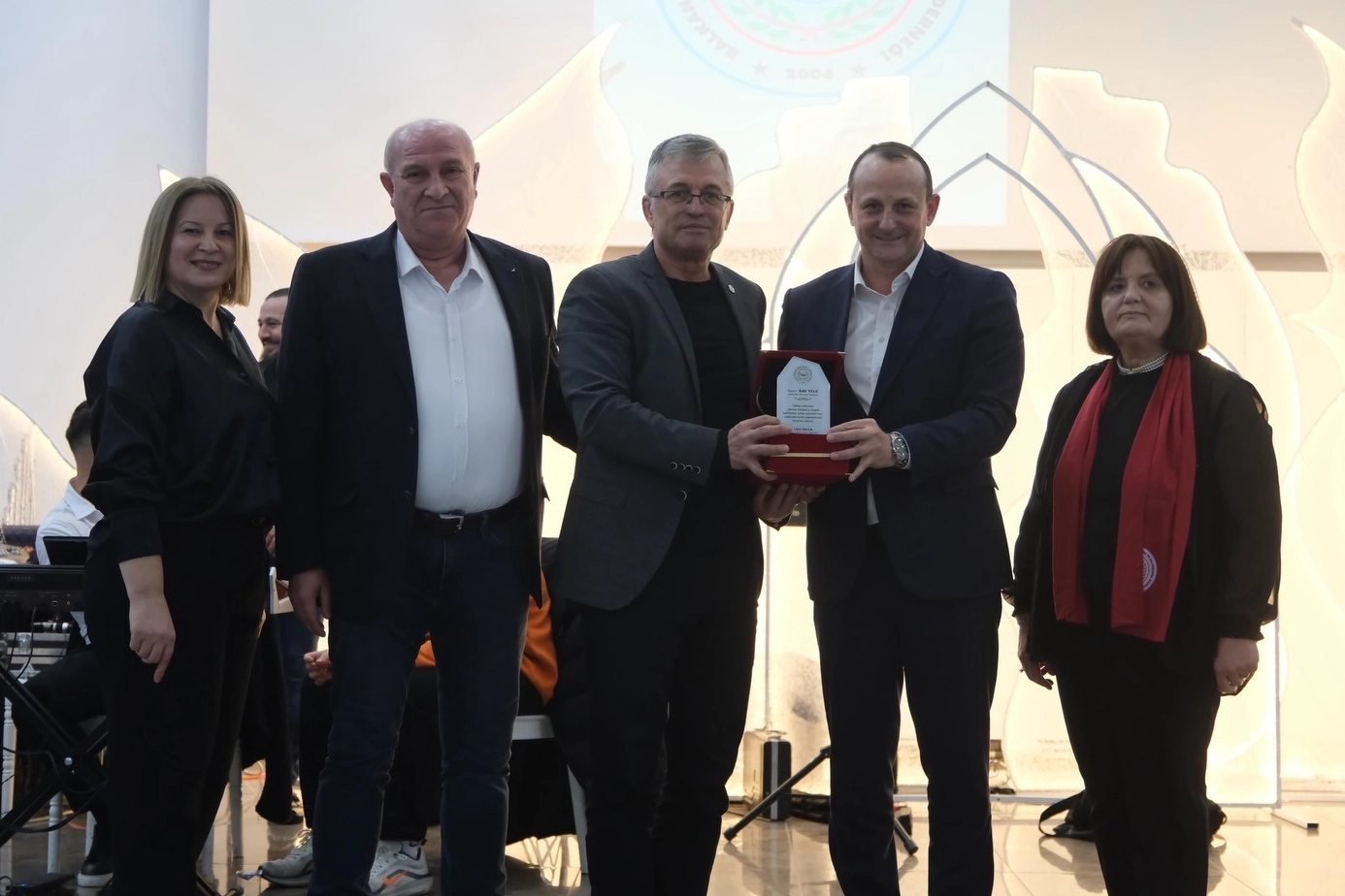 Gecede Bal-Göç Derneği Başkanı Lütfi Özgür de katkılarından dolayı Başkan Yele’ye ve sahne alan Grup Aydos ekibine teşekkür ederek plaketlerini takdim etti.