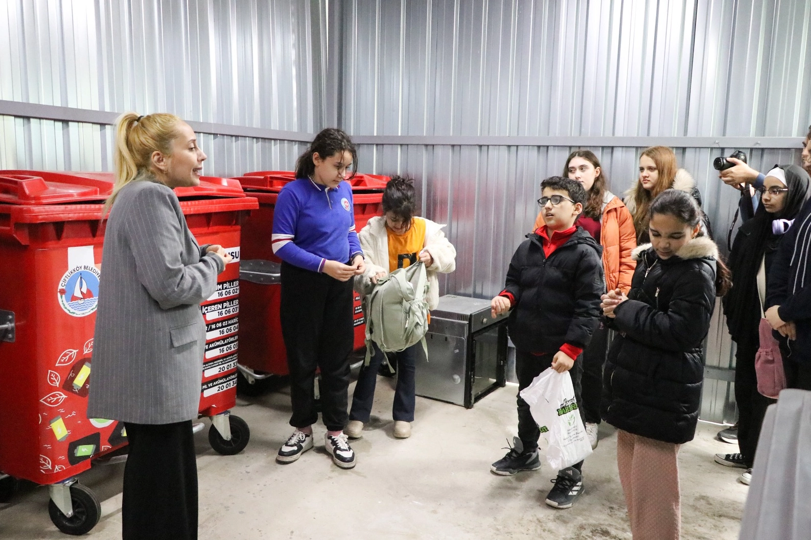 Gençlik Merkezi’nden gelen öğrencileri Çiftlikköy Belediyesi İklim Değişikliği ve Sıfır Atık Müdürü Emine Yeşim Aras karşıladı. Etkinliğe katılan öğrenciler, evlerinden getirdikleri atıkları türlerine göre ayrıştırarak geri dönüşüm sürecine doğrudan katkı sağladı.