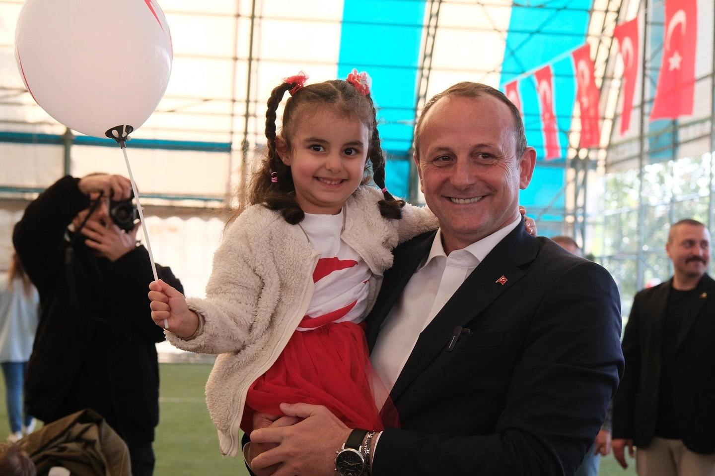 Çiftlikköy Belediye Başkanı Adil Yele de şenlik alanına gelerek çocukların coşkusuna ortak oldu.