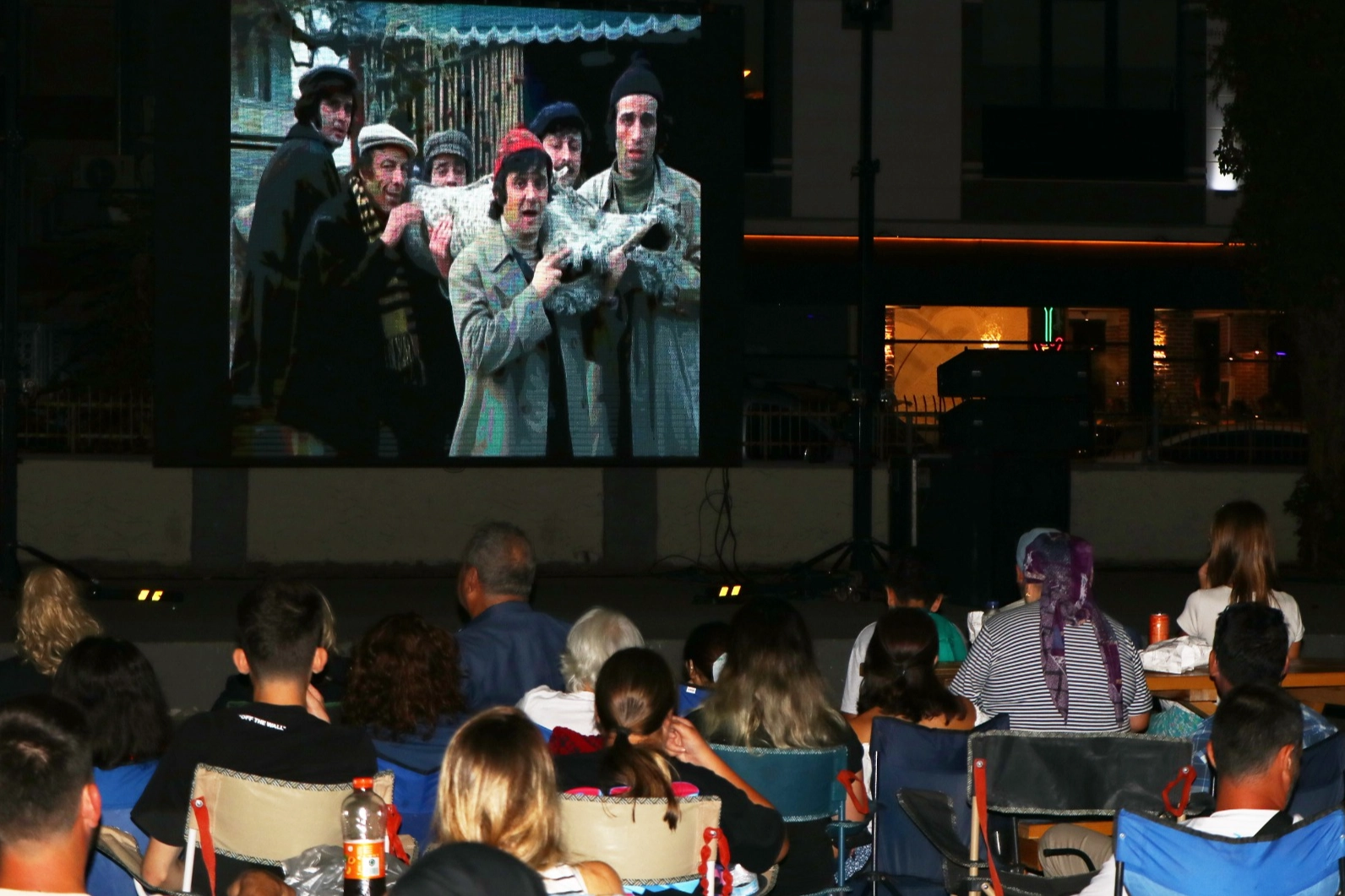 Çiftlikköy Belediye Başkan Vekili Ramazan Pekdemir’in, eşi Sevgi Pekdemir’le birlikte izlediği nostaljik filmi, sandalye ve minderlerini yanına alan yüzlerce Çiftlikköylü de keyifle izledi.