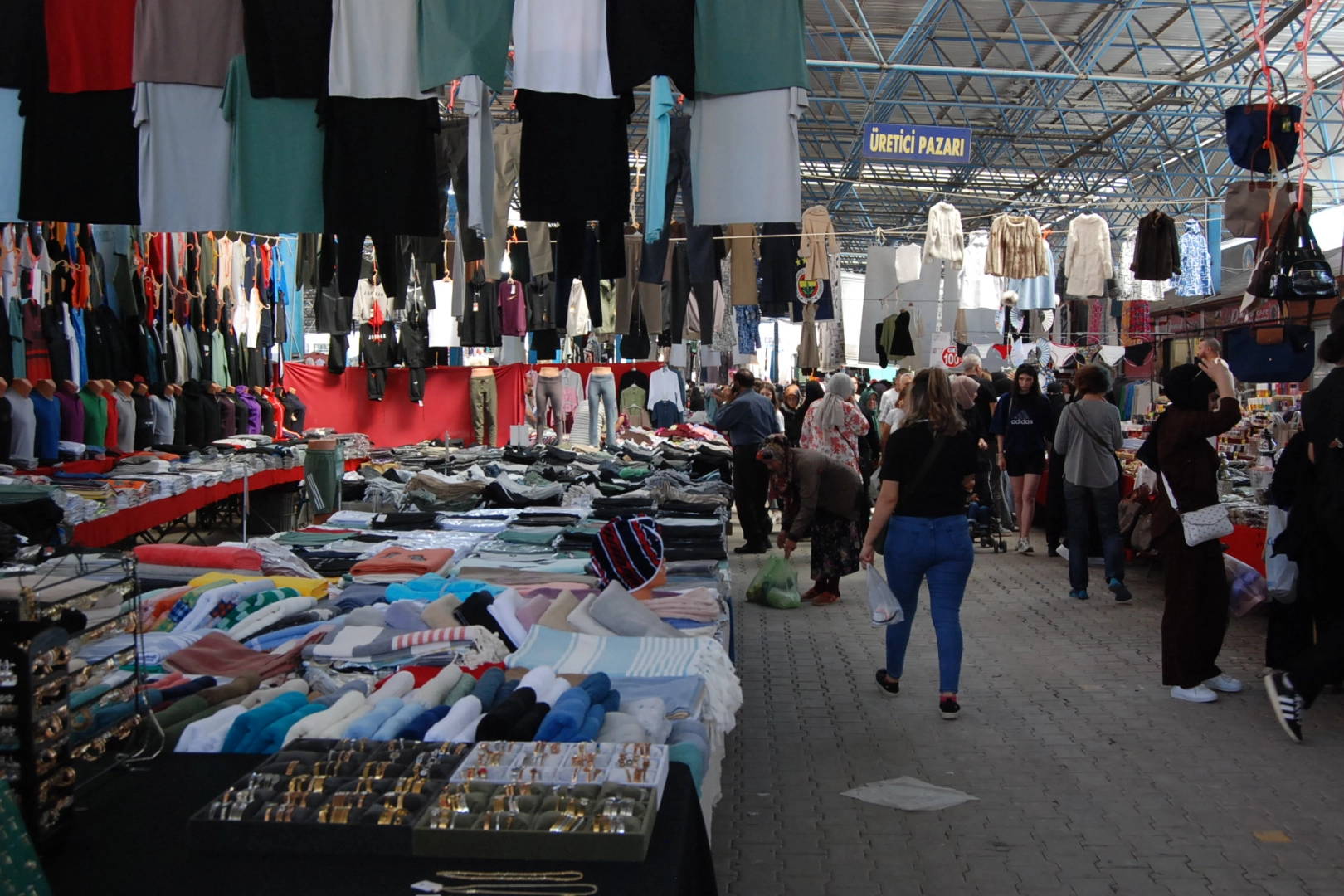 Giyimden ev tekstiline, aksesuardan mutfak eşyalarına kadar pek çok farklı kategoride ürünün sergilendiği pazarda, her bütçeye ve zevke uygun seçenekler mevcuttu.