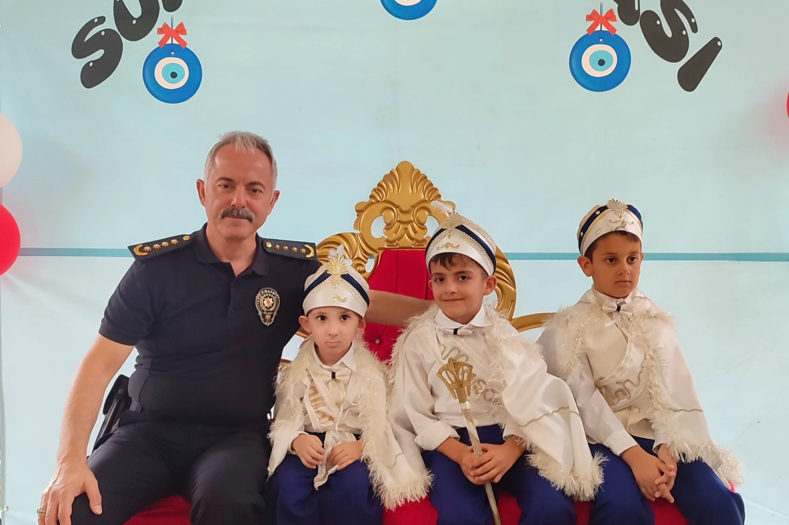 Renkli görüntülere sahne olan şölende minikler erkekliğe ilk adımını attı. Şölende protokol üyeleri ve aileler miniklerin sünnet sevincine ortak oldu.