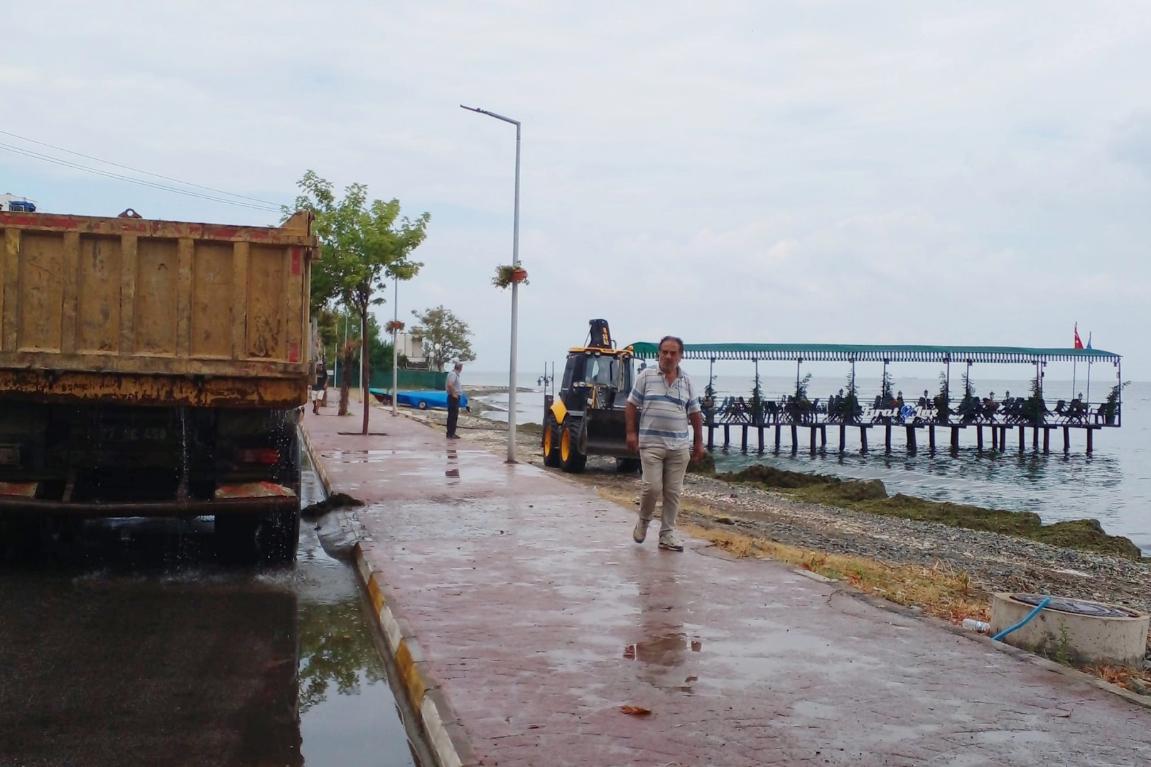Çınarcık Belediyesi ekipleri ilçe genelindeki yosun temizliğine kaldığı yerden devam ediyor. Çınarcık Karpuzdere Mahallesi’nde kötü hava şartlarından dolayı çirkin bir görüntüye sebep olan ve kötü kokular yayan yosunları temizlemek için belediye personeli sahil şeridinde çalışma başlattı.Ekipler Karpuzdere Mahallesi - Üçreisler Mevki sahil şeridinde biriken yosunları, loder kepçe ile toplayarak temizliyorlar. Kepçe ile toplanan yosunlar, kamyona yüklenerek sahil şeridinden uzaklaştırılıyor. Sahile vuran yosunlar temizlenirken aynı zamanda sahil hattının düzleştirilme çalışması da gerçekleştiriliyor.