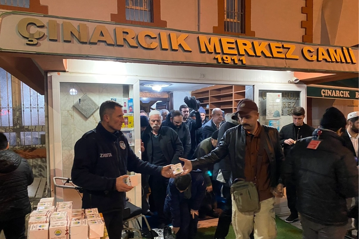 Miraç Kandili’nde, Çınarcık’taki camilerde Kur’an-ı Kerim tilaveti yapıldı, mevlitler okundu ve dualar edildi. Camilerin çıkışlarında cemaate kandil simidi ikramında bulunan Çınarcık Belediyesi zabıta personelleri, vatandaşların mübarek Miraç Kandili’ni kutladı.