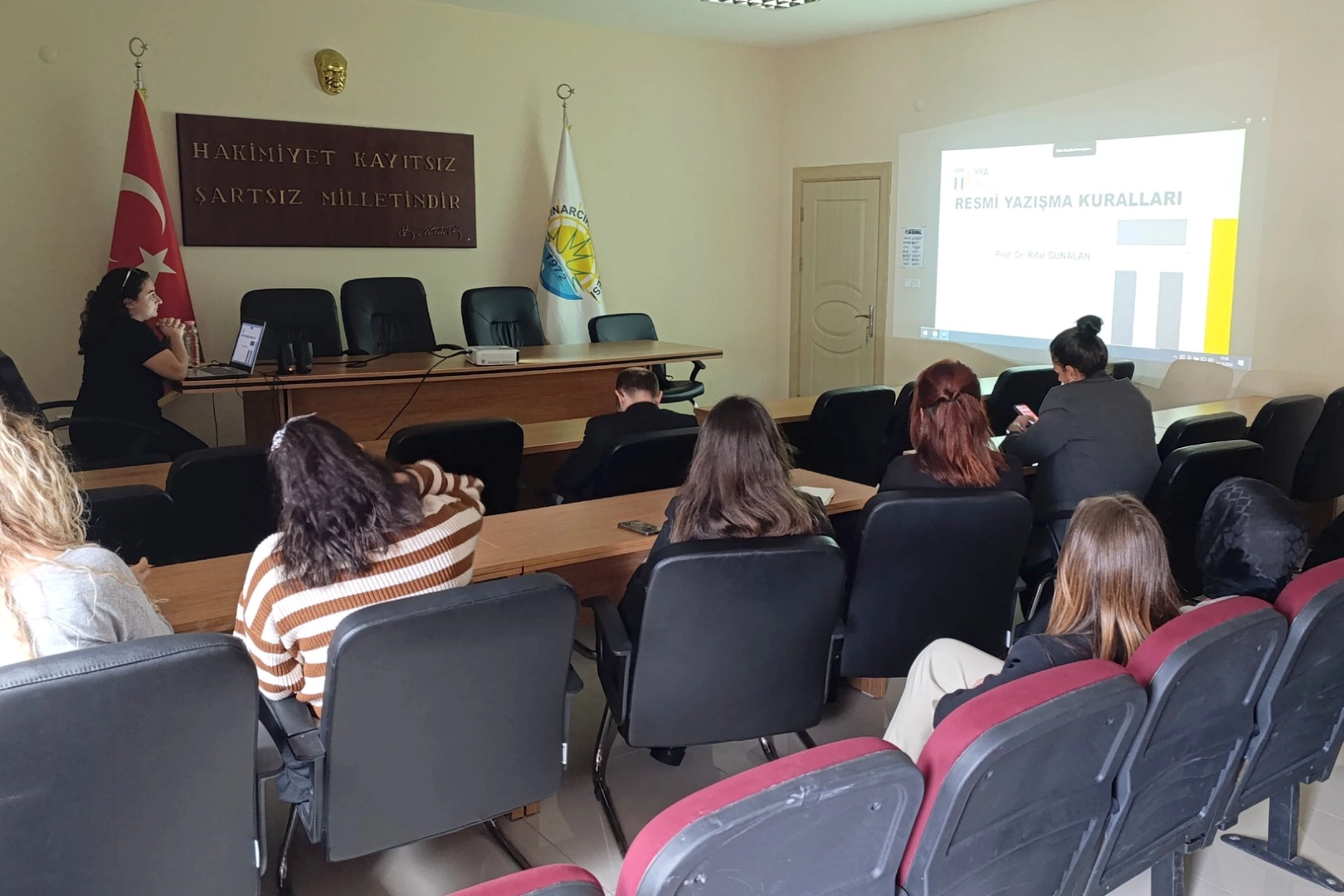 Gerçekleştirilen eğitimde, resmi yazışmalarda dikkat edilmesi gereken kurallar, doğru iletişim teknikleri ve belgelerin düzenlenmesi konularında bilgiler verildi. Katılımcılar, resmi yazışmaların nasıl daha etkili hale getirileceği ve kurumsal iletişimin önemi üzerine bilgi sahibi oldular.