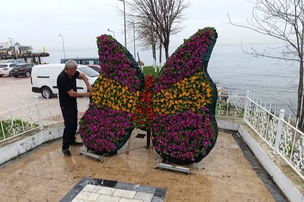 Ekiplerin en dikkat çekici çalışmalarından biri de Özgürlük Parkı'nın yanındaki kelebek figürünün çiçeklendirilmesi oldu.