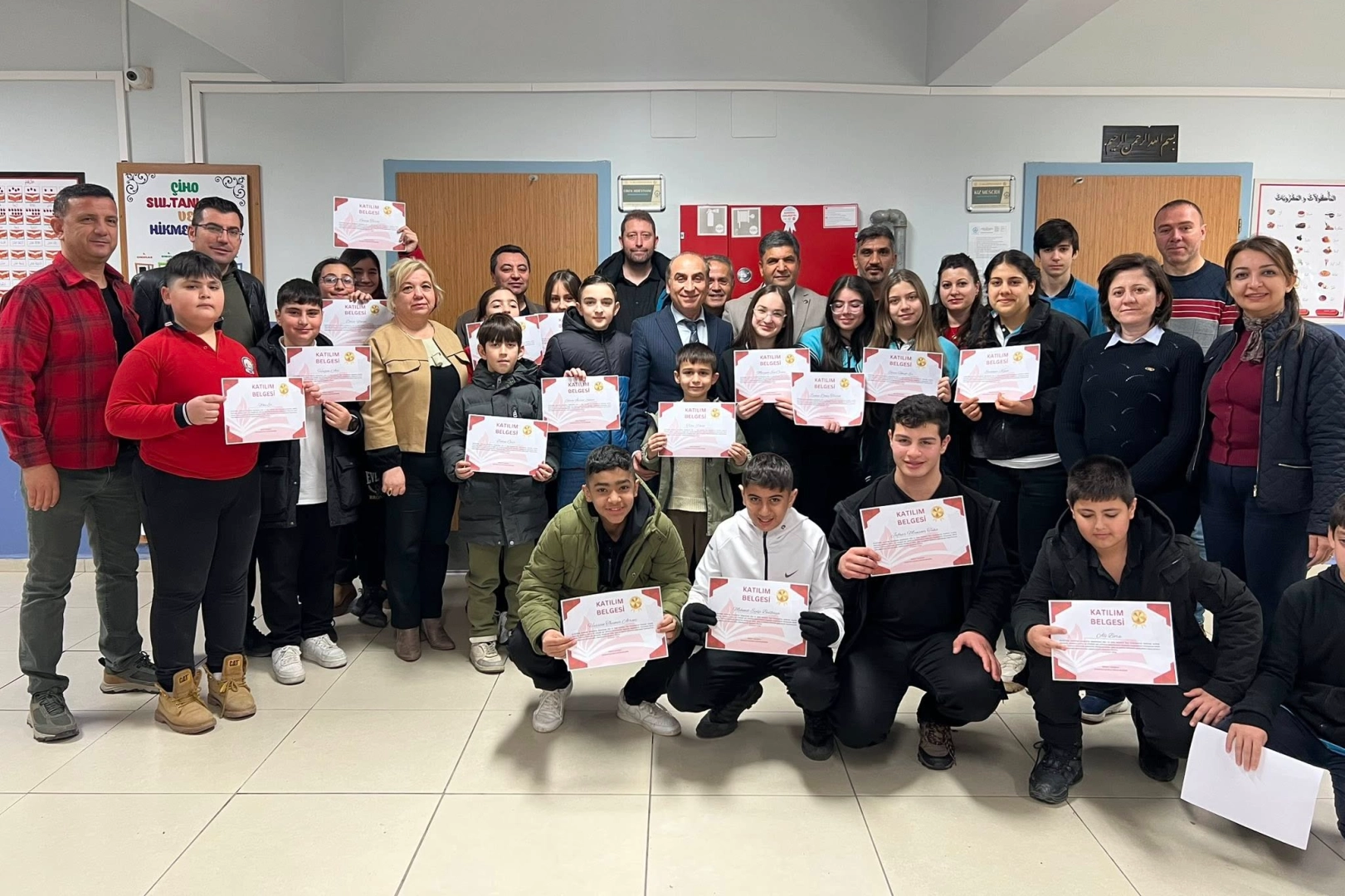 Etkinliğe, İlçe Milli Eğitim Müdürü Mesut Demirci ile Şube Müdürü Şehmus Polat da katılarak öğrencilerle bir araya geldi. Yarışmaların ardından dereceye giren öğrencilerin yanı sıra turnuvaya katılım sağlayan tüm öğrencilere katılım sertifikaları takdim edildi.