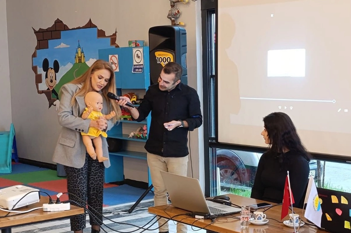 Seminerde, Çocuk Doktoru Alkın Melikoğlu ve Fizyoterapist İbrahim Kurşun, katılımcılara sağlık ve çocuk gelişimi üzerine değerli bilgiler sundu.