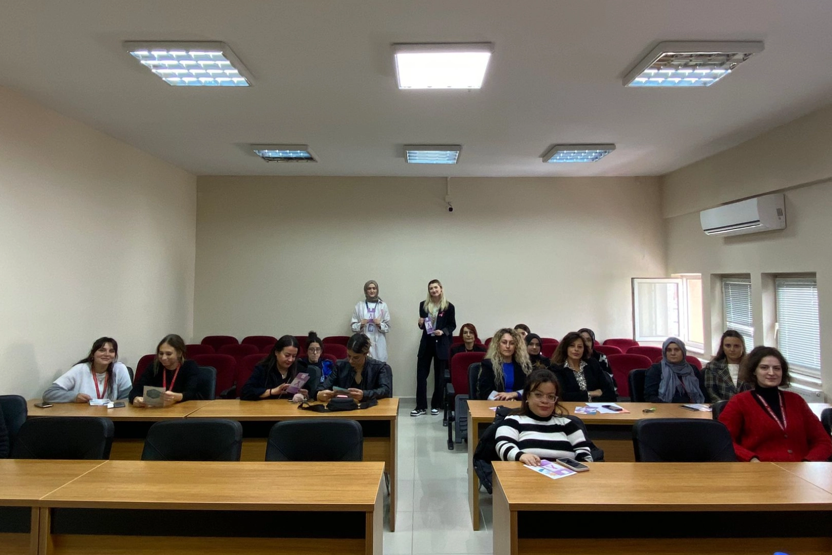 Kadın belediye personellerinin katıldığı seminer; Çınarcık İlçe Sağlık Müdürlüğü’ne bağlı Kanser Erken Teşhis, Tarama ve Eğitim Merkezi’nden hemşire Aleyna Ekiz ile hemşire Özlem Bozkurt tarafından verildi. Seminerde, meme kanserinin erken teşhisi, tarama yöntemleri ve hastalığın belirtileri hakkında bilgilendirmeler yapıldı. Katılımcılar, düzenli kontrollerin önemi, kendine muayene yöntemleri ve sağlıklı yaşam tarzının nasıl benimsenebileceği konusunda kapsamlı bilgiler aldı. Hemşire Ekiz, katılımcılara meme kanserine karşı farkındalığın artırılmasının ve erken teşhisin yaşam kurtarıcı olduğunu vurguladı. Seminer sonrasında katılımcılar, kafalarına takılan soruları ve merak ettikleri konuları sorarak cevap bulma şansı yakaladı. Bu anlamlı etkinlik meme kanserine karşı önemli bir farkındalık yarattı. Çınarcık İlçe Sağlık Müdürlüğü’ne bağlı Kanser Erken Teşhis, Tarama ve Eğitim Merkezi’nden hemşire Aleyna Ekiz ile hemşire Özlem Bozkurt, katılımcılara teşekkür etti, katılımcılar da vermiş oldukları kıymetli bilgiler adına Ekiz ve Bozkurt’a teşekkürlerini iletti.
