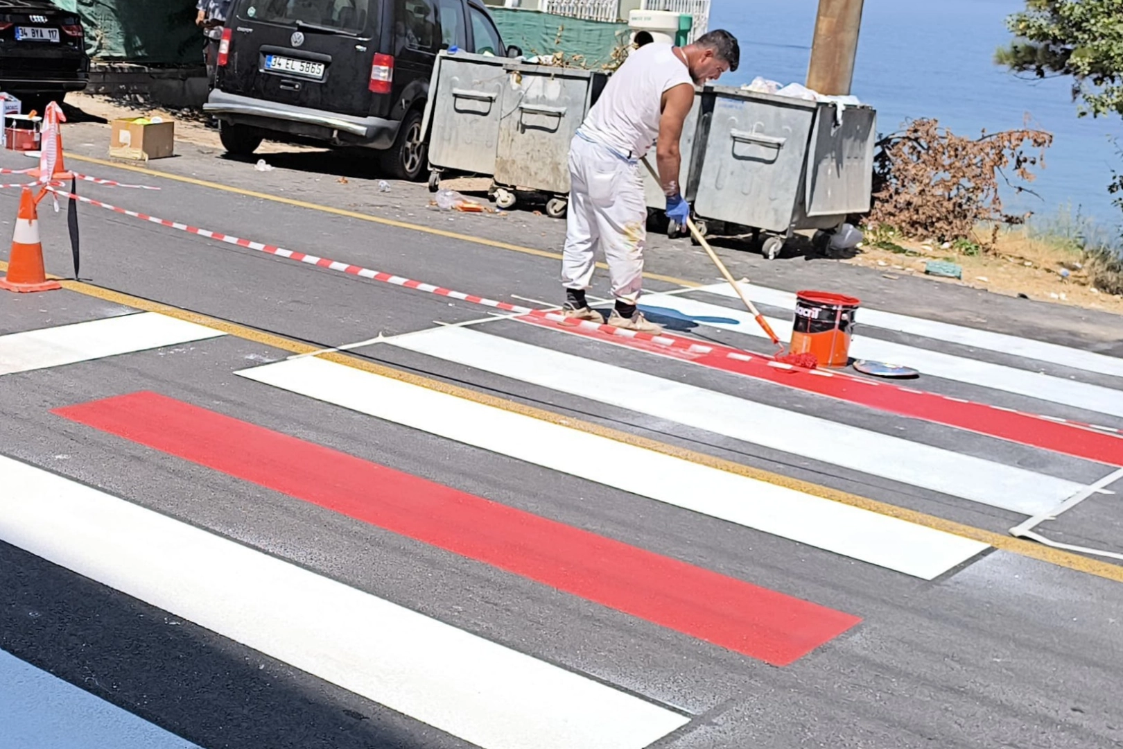 Ekipler, aynı zamanda da yoğun kullanılan caddelerdeki yaya geçitlerini yenileme çalışması yürütüyor. Daha görünür hale gelen geçitlerle, hem sürücüler hem de yayalar için güvenli bir trafik ortamı oluşturuluyor.