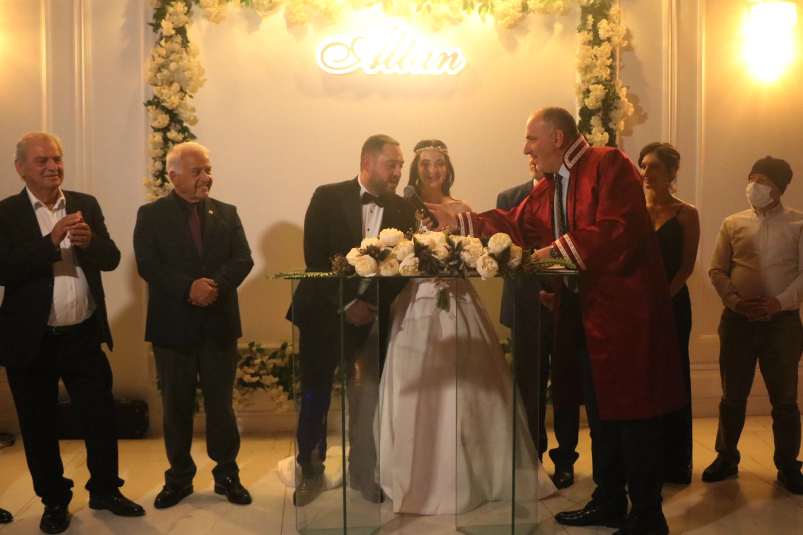 Nikah törenlerinde dünyaevine giren çiftlerin yanında olan Çınarcık Belediye Başkanı Numan Soyer yeni evlenen çifti tebrik etti.