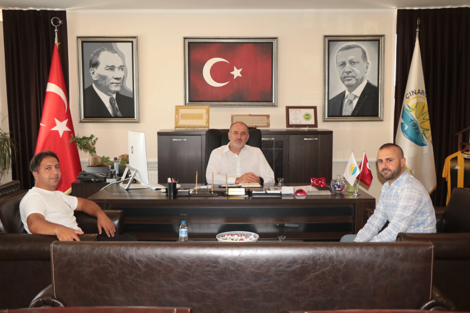 Yalova Çınarcık İlkokulu Müdür Vekili Ahmet Kadir Şavlı ve Sınıf Öğretmeni Abdullah Erçelik Çınarcık Belediye Başkanı Numan Soyer’i makamında ziyaret ettiler.