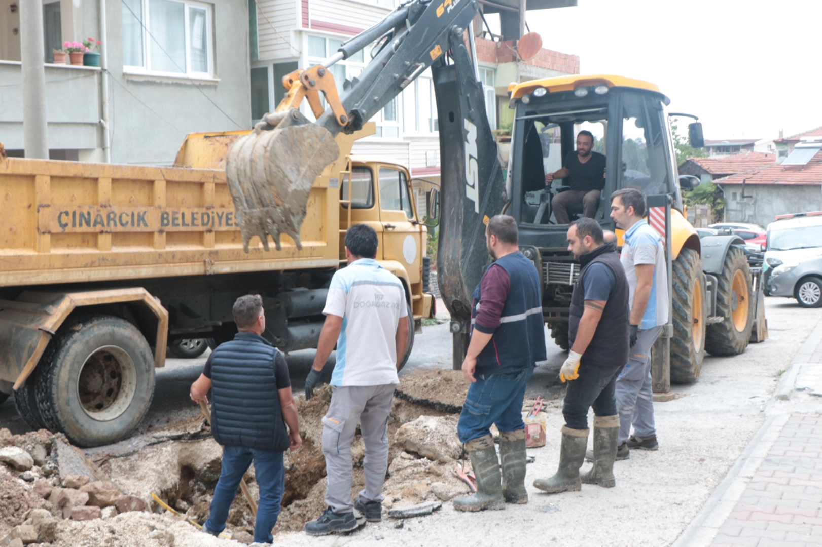 Fen İşleri Müdürlüğü’ne bağlı su arıza birimi olay yerine giderek su arızasını gidermek için yoğun bir çalışma başlattılar. Gazi Mevlüt Yüksel Caddesi’nde içme ve kullanma suyu isale hattında meydana gelen su patlağına ekipler kesintisiz olarak müdahale ediyorlar. Vatandaşlar yapılan çalışmalardan dolayı belediye ekiplerine ve Çınarcık Belediye Başkanı Numan Soyer’e teşekkür ettiler.