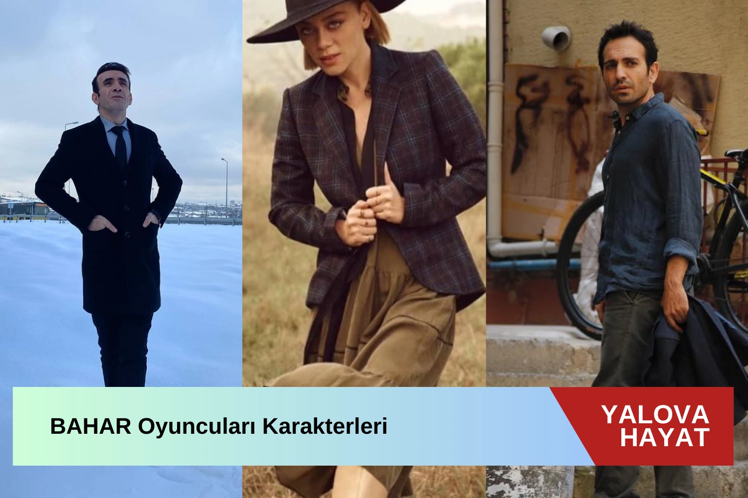 Bahar Dizisi Oyuncuları ve KarakterleriBahar dizisinin oyuncuları arasında; Demet Evgar, Buğra Gülsoy, Mehmet Yılmaz Ak, Ecem Özkaya, Füsun Demirel, Elit Andaç Çam, Demirhan Demircioğlu, Nil Sude Albayrak, Sena Kalıp, Alisa Sezen Sever ve Hatice Aslan yer alıyor.