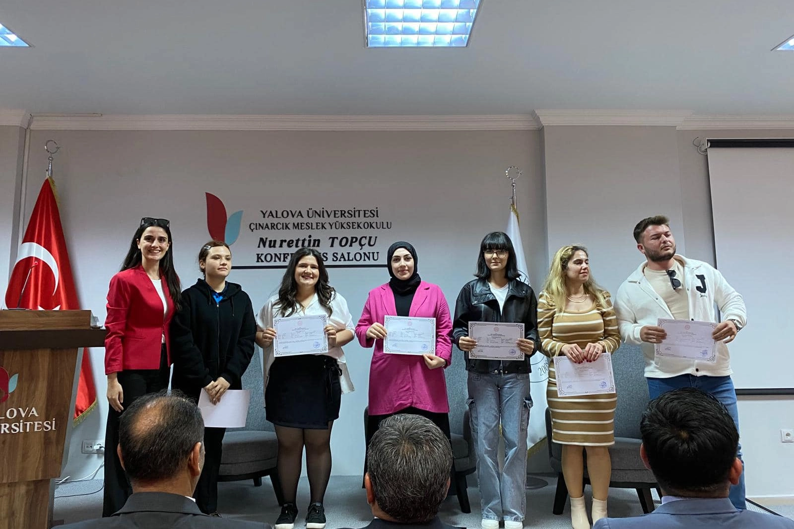Çınarcık Meslek Yüksek Okulu konferans salonunda yapılan törende Bilişim Alanında açılan Bilgisayar İşletmenliği-Operatörlüğü, Klavye Teknikleri ile Ofis Programları Kullanımı kurslarından sertifika almaya hak kazanan 44 kursiyere sertifikaları verildi.