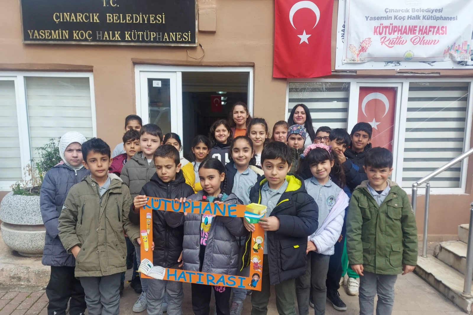 Çınarcık İmam Hatip Lisesi öğrencileri ve öğretmenleri Meryem Mukaddes Sağlık kütüphaneyi ziyaret ederek, kitapları incelediler. Beğendikleri kitapları ödünç alan lise öğrencileri, kütüphaneye üye olmayı da ihmal etmedi. Ardından Çınarcık İlkokulu öğrencileri, Okul Müdürü Duygu Karabacak ve Müdür Yardımcısı Özlem Özdemir eşliğinde Yasemin Koç Halk Kütüphanesini gezdi. Kütüphane personeli, öğrencilerin merak ettikleri soruları cevaplayarak, birlikte kitap okuma ve kelime oyunu etkinlikleri gerçekleştirdi.
