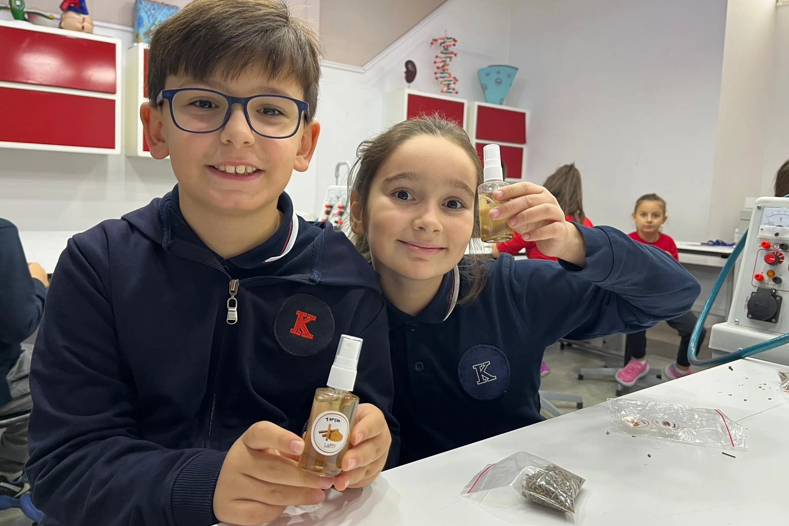 TED Yalova Koleji’nde Fen Bilimleri dersini uygulamalı öğrenme ile pekiştiren 3. sınıf öğrencileri, duyu organları konusuna yönelik olarak “Parfüm Yapımı” etkinliği gerçekleştirdi. Öğrenciler, kendi parfümlerini hazırlarken hem eğlenceli vakit geçirdi hem de bilimsel süreçleri deneyimleyerek kalıcı öğrenme sağladı.
