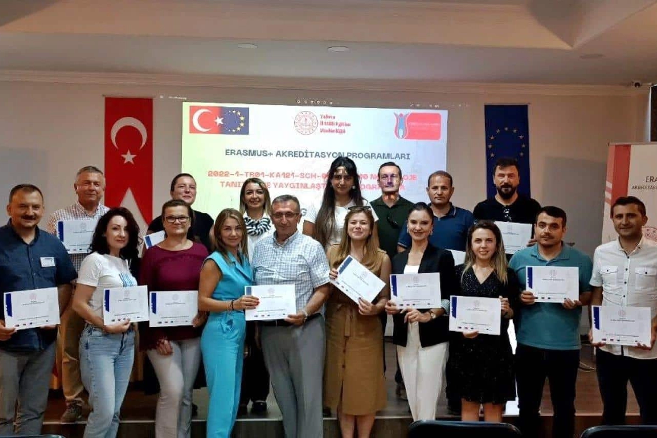 Avrupa Birliği'nin Eğitim ve Gençlik Programları Merkez Başkanlığı Koordinasyonuna göre 2021-2027 yılları arasında gerçekleştirilecek olan Erasmus+Akreditasyon programında akredite kuruluş olarak yer alan Yalova Milli Eğitim Müdürlüğü çalışmalarının kapsamında Erasmus+Akreditasyon (SCH) Okul Eğitimi programlarına katılmış olan okul ve kurumlardan yönetici, öğretmen ve öğrencilerin yer aldığı projelerin tanıtımı ve yaygınlaştırma programı Yalova Merkez ilçesinde bulunan Uygulama Otelinde gerçekleştirildi.