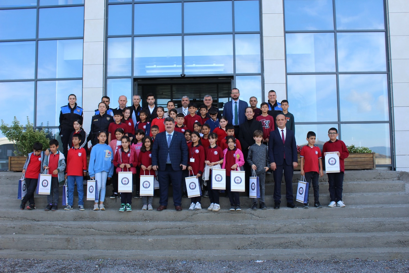 Etkinlik kapsamında Müfettiş Hamdi Girgin İlkokulu 4-C sınıfı ile Cumhuriyet Ortaokulu 5-A sınıfı öğrenci ve öğretmenleri, yeni İl Emniyet Müdürlüğü hizmet binasını ziyaret etti.